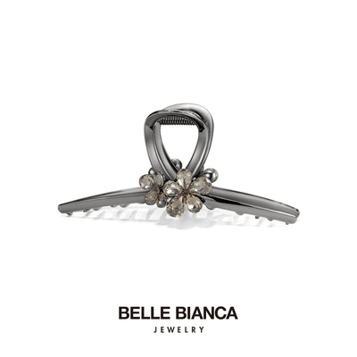 Black & Silver Crystal Flower Linear Hair Claw