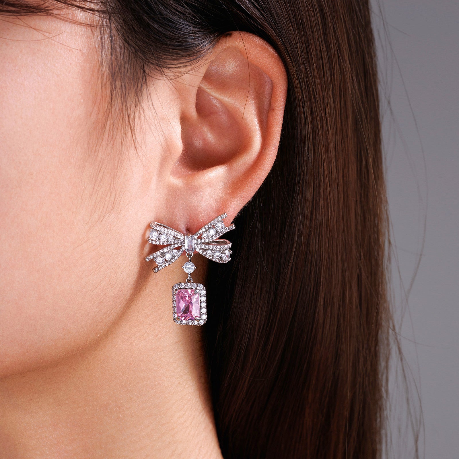 Bow Square Stone Earrings-Two Colors