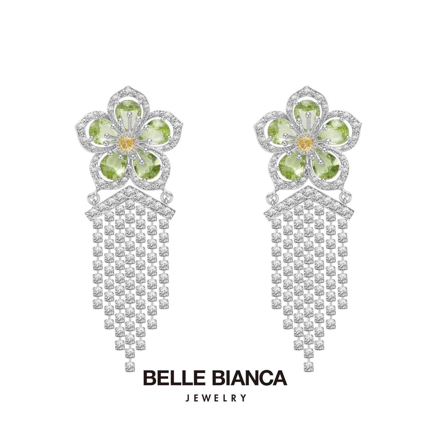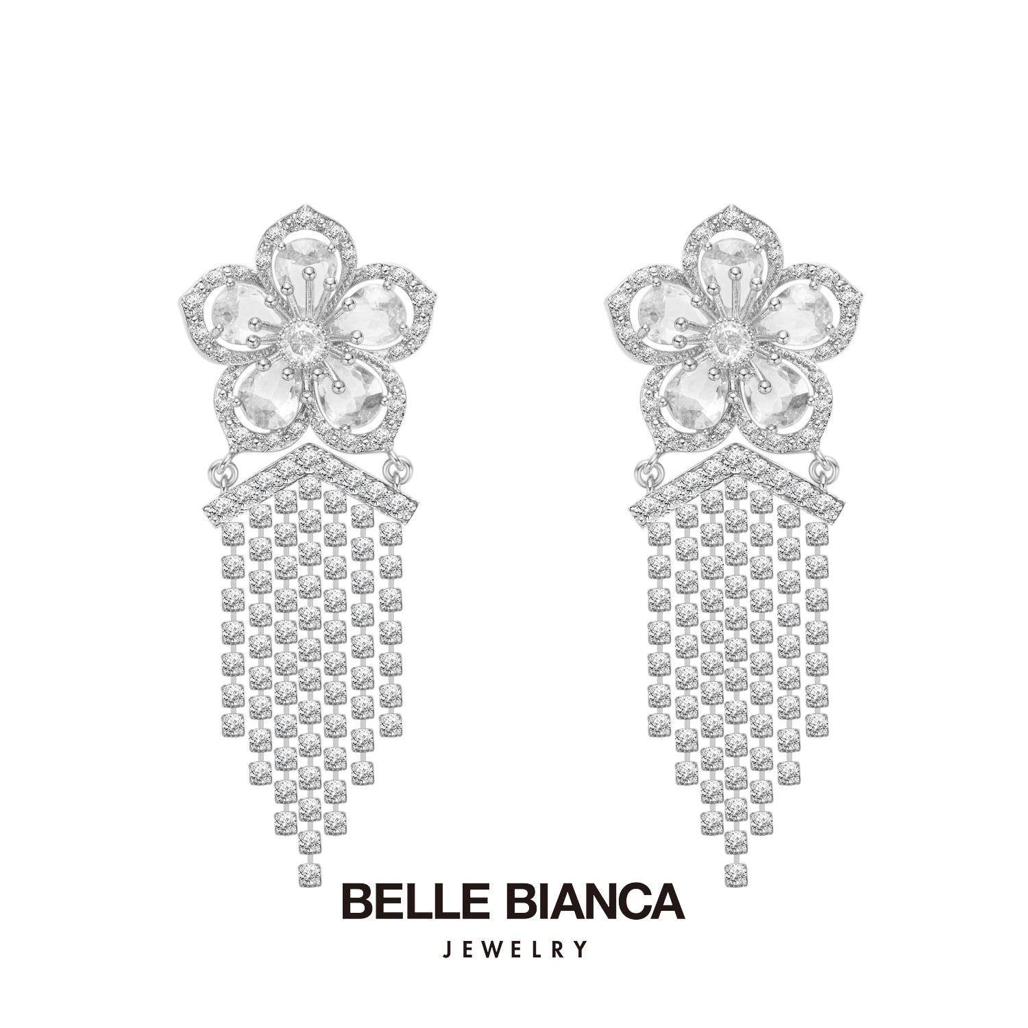 Floral Patterned Glittering Tassel Earrings - 3 Colors Available