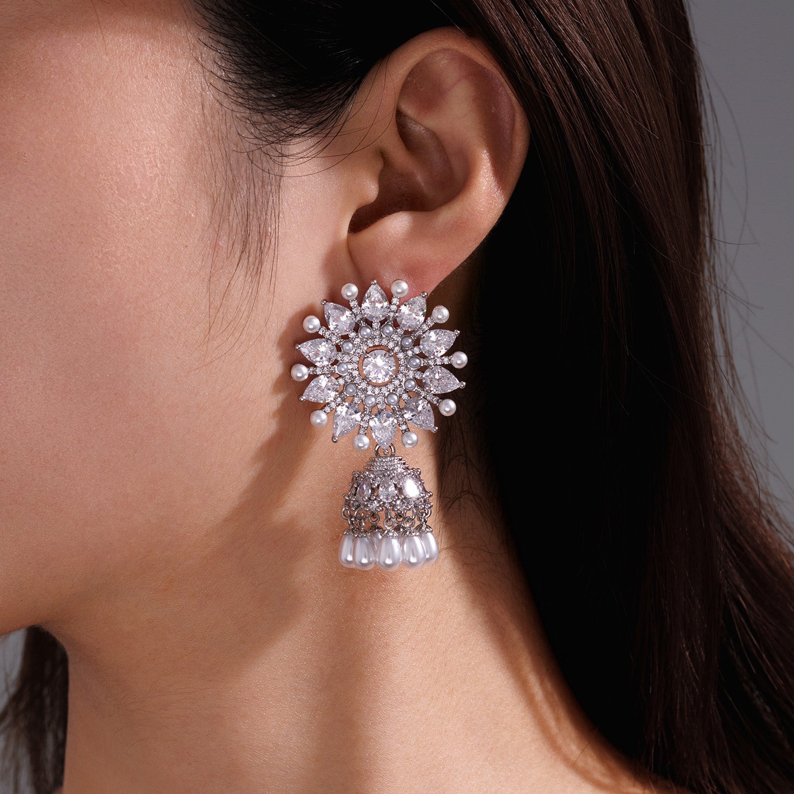 Pearl Flower Cluster Bell-Shaped Tassel Earrings