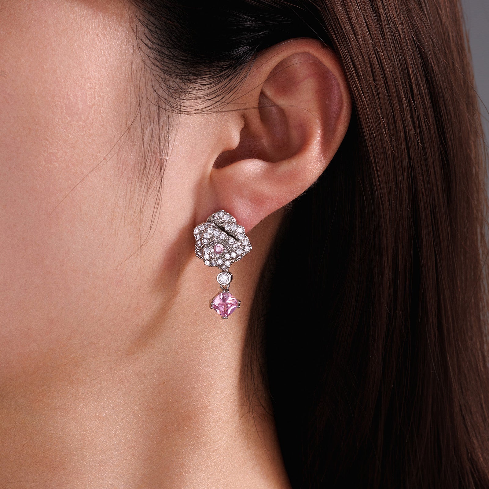 Pink Rose Drop Earrings