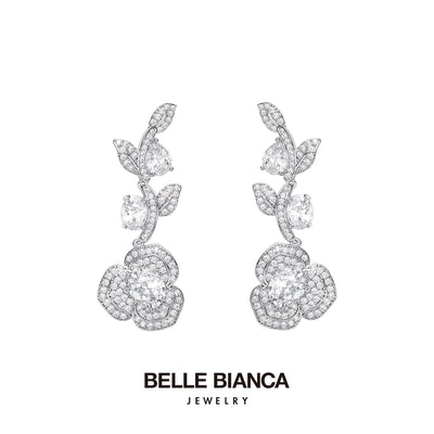 Luminous Emerald Crystal Clustered Leaf Earrings