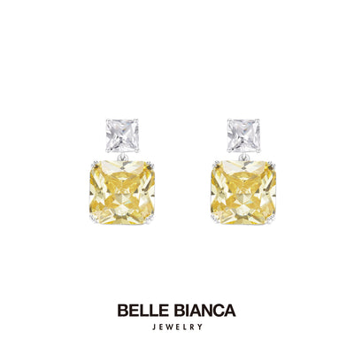 Tapered Square Yellow Diamond-Zircon Stud Earrings