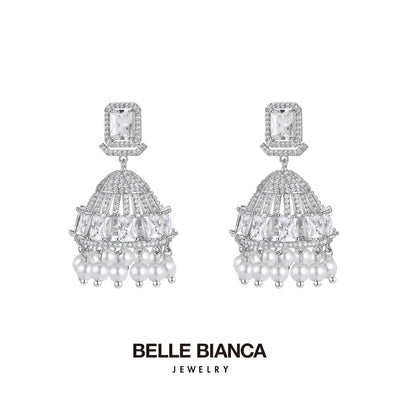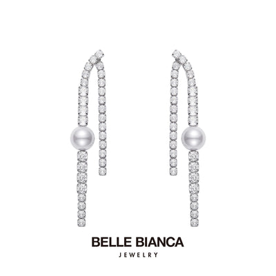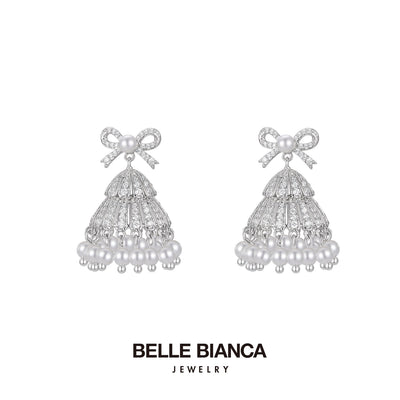 Bowknot Pearl & Zircon Curtain Drop Earrings