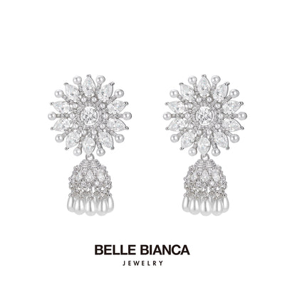 Pearl Flower Cluster Bell-Shaped Tassel Earrings