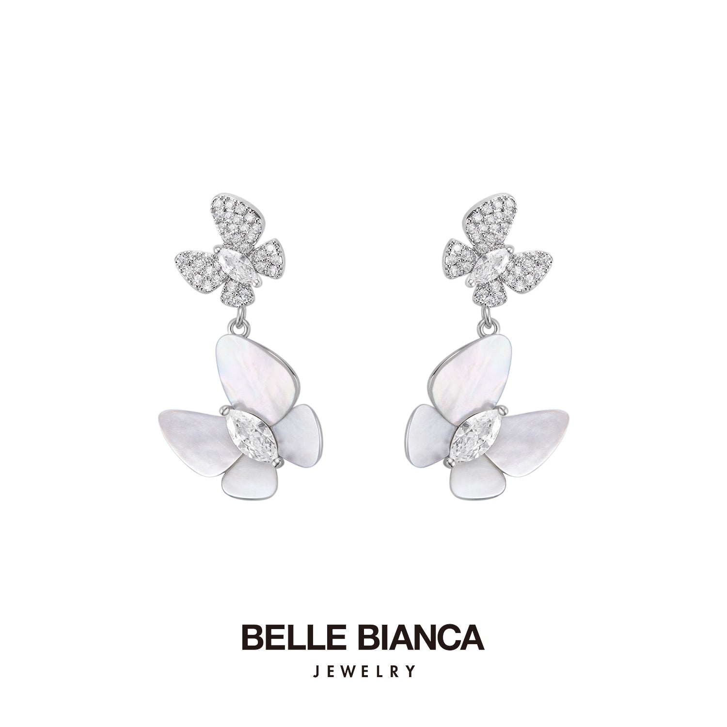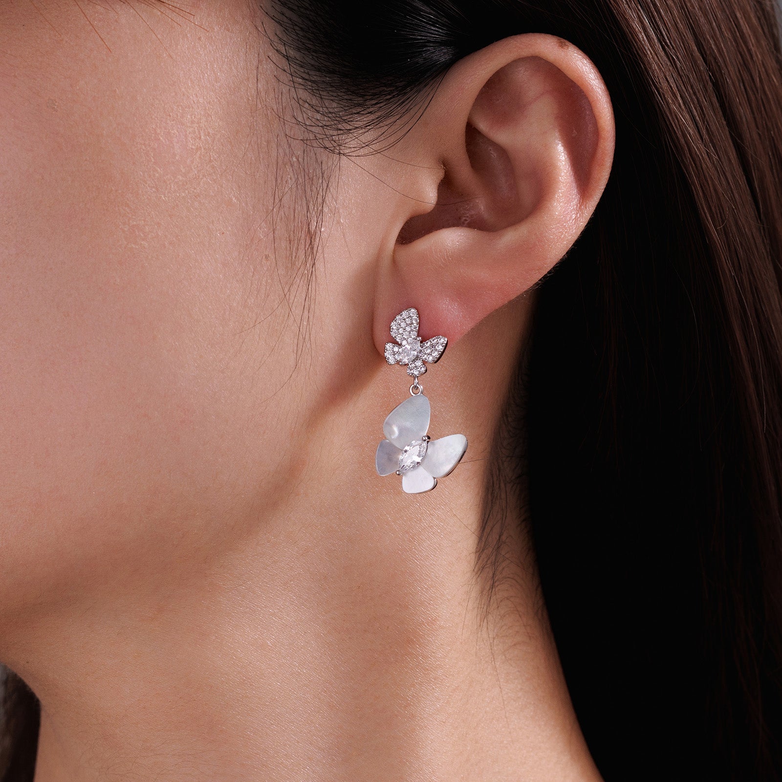 Mother-of-Pearl Butterfly Double-Layer Earrings