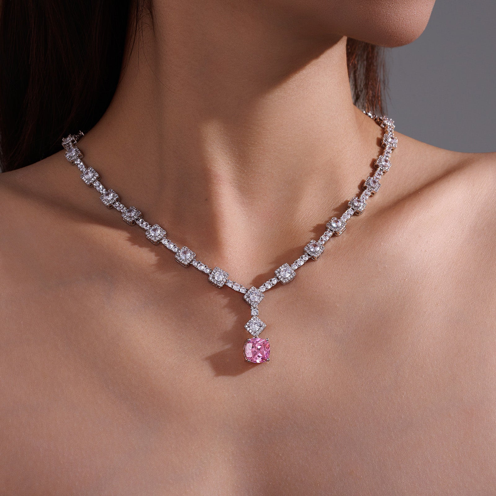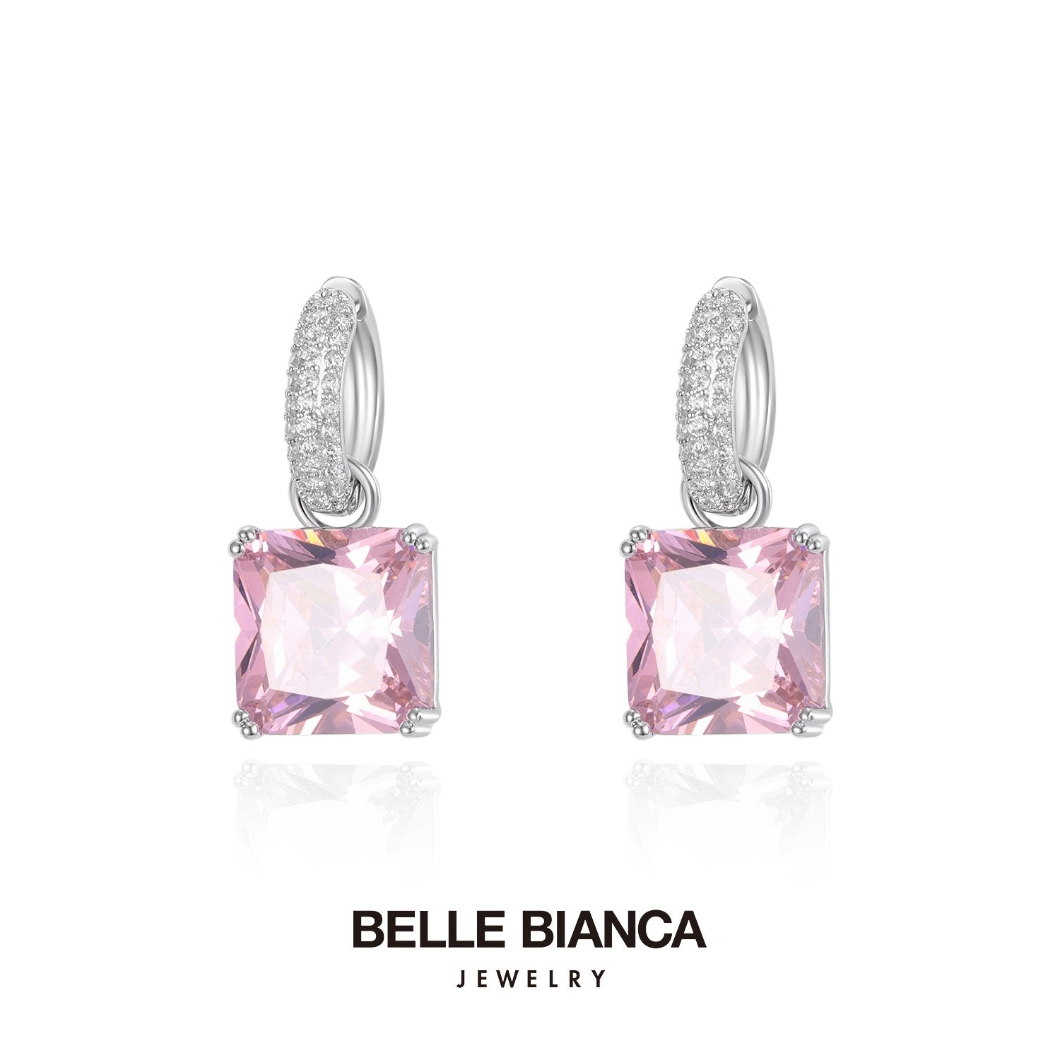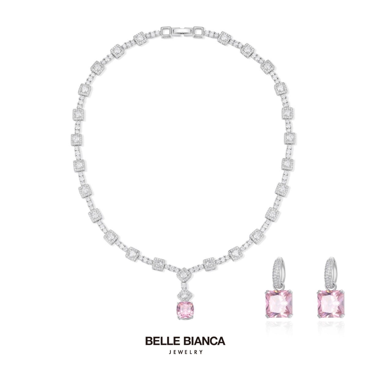 Belle Sakura Pink Glaze Sugar Cube Sparkling Necklace+Earrings 240314+240315