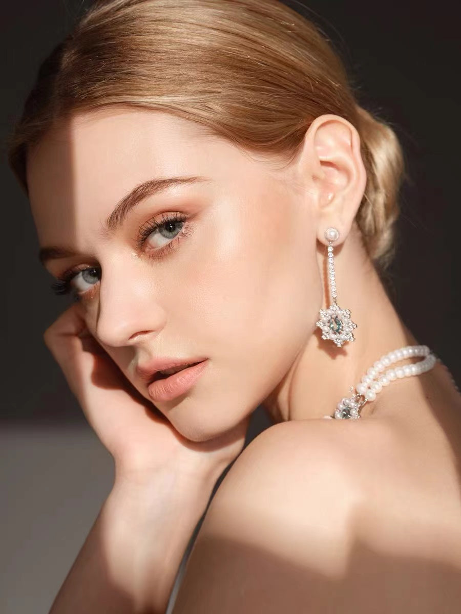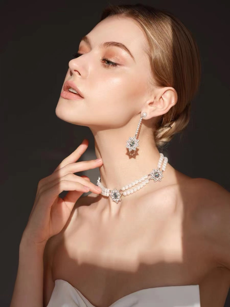 Belle Blue Snowflake Pearl Necklace