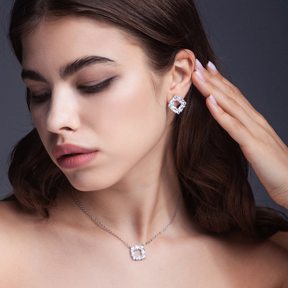 The singular square shaped crystal form the perfect necklace, simple but beautiful.