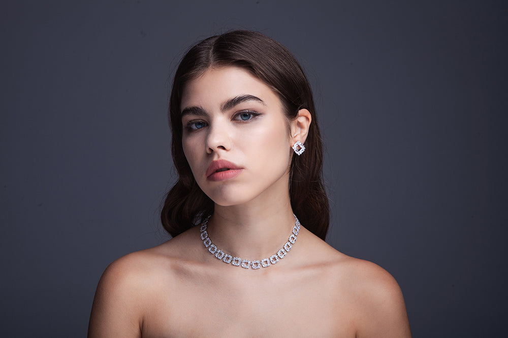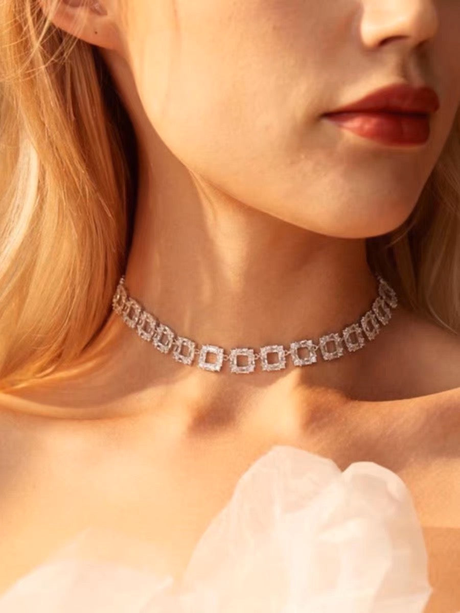 The square shaped crystals form the perfect stunning necklace for any glamour moment to shine.