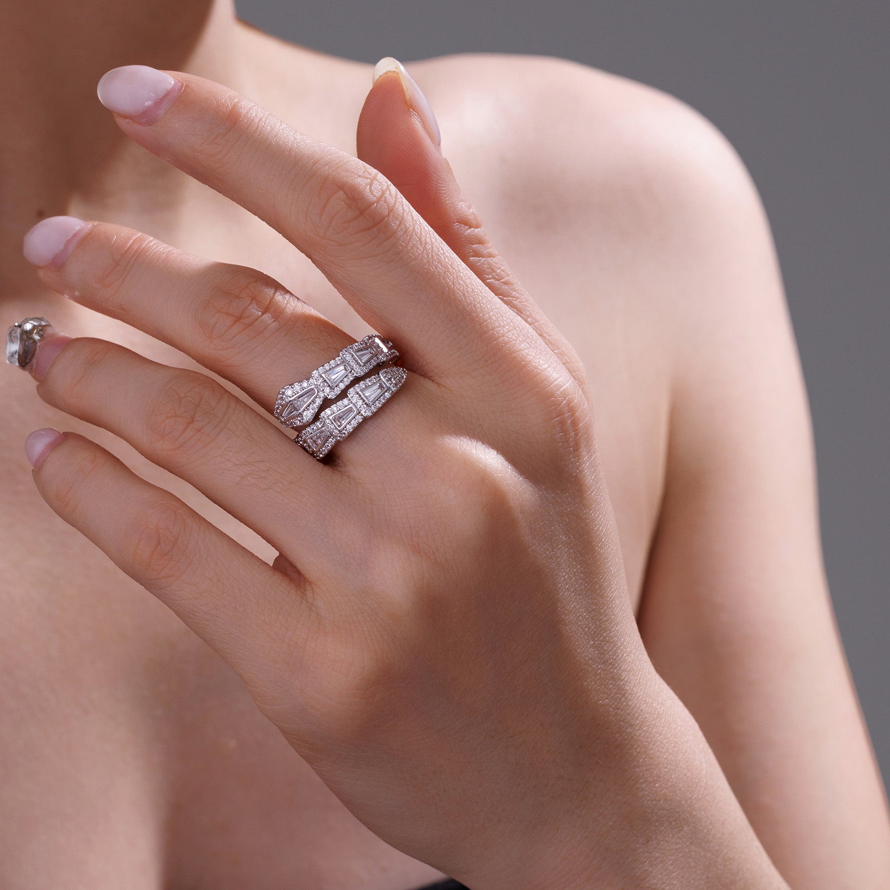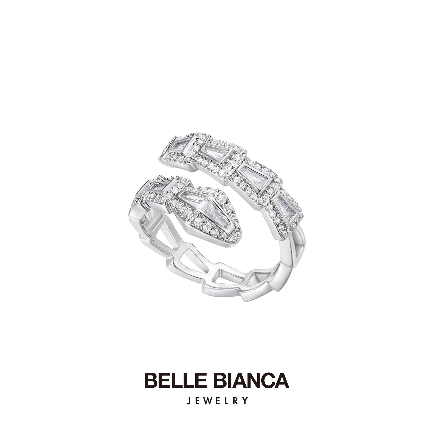 Geometric Pave-Set Diamond Rhombus Ring